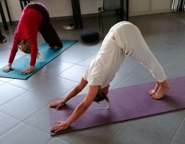 - un retour à l’écoute du souffle plutôt qu’au bavardage mental.
