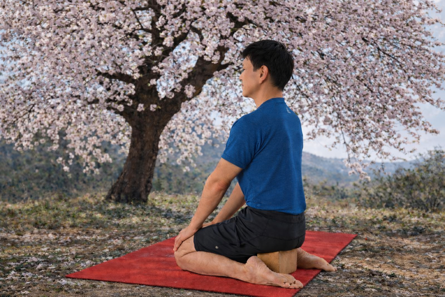 Virāsana est une posture d’ancrage et de stabilité intérieure. Elle favorise une assise calme, une respiration fluide et une présence attentive.